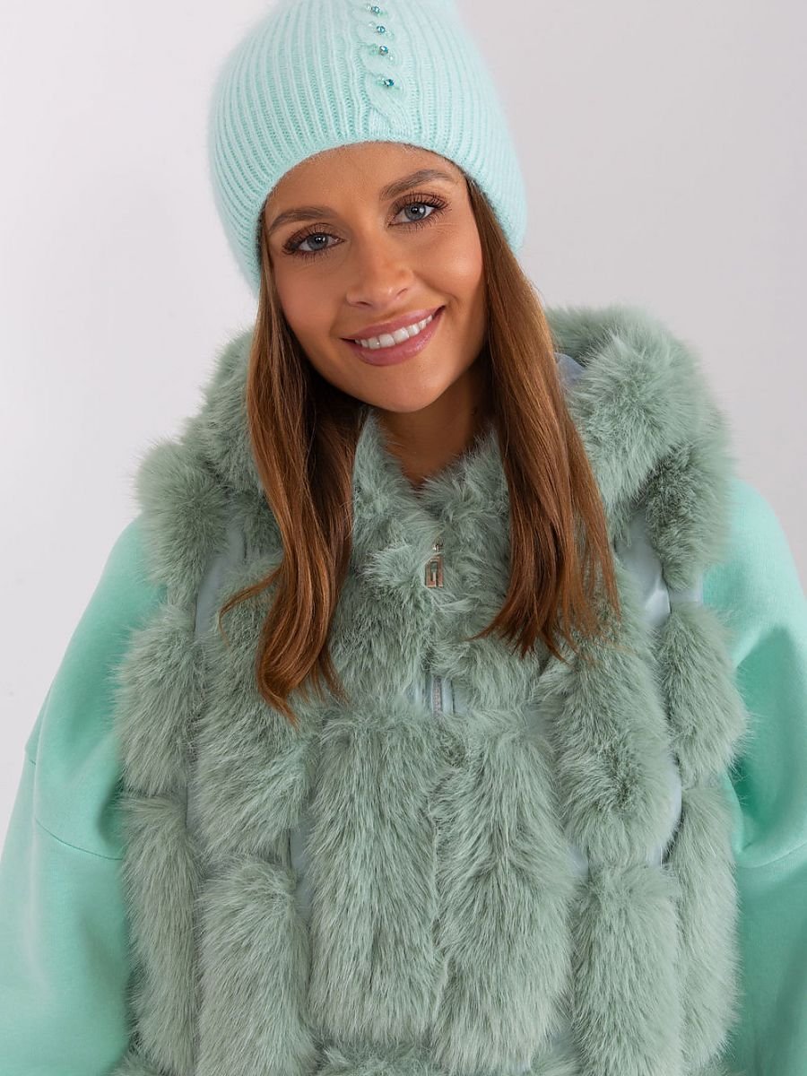 Winter warm hat with braided pattern. On the front an interesting application.