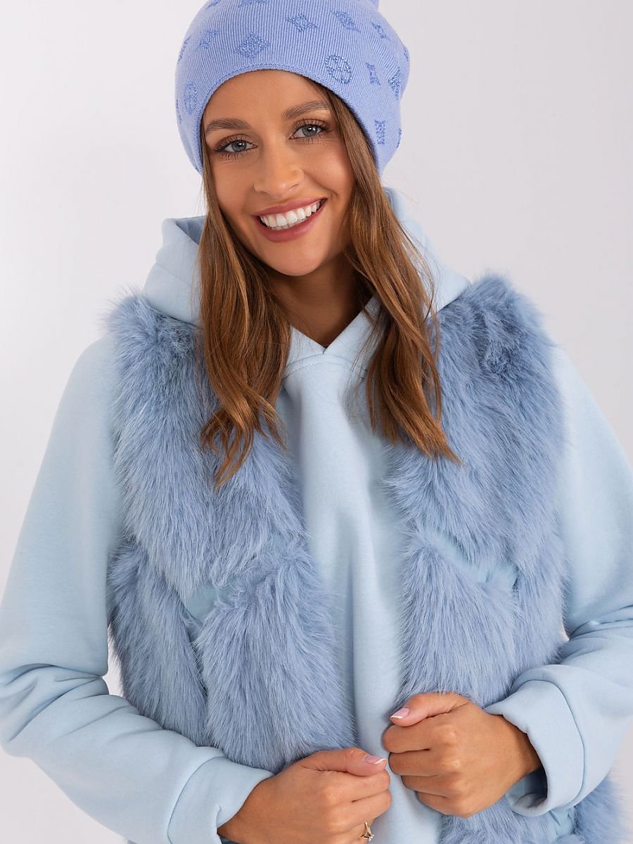 Warm winter women's beanie hat with cashmere, with decorative rhinestone application.